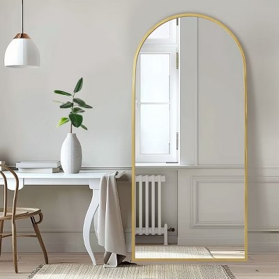 MAYEERTY Gold 23.62 x 66.93 Inch Arch Shaped Thin Edged Aluminum Alloy Full Length Mirror with Stand for Living Room and Bedroom Wall Decor