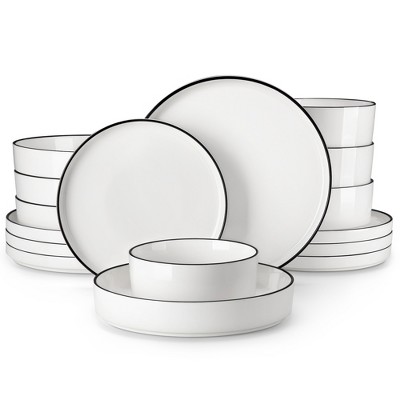 18-Piece Black-Trim White Curved Edge Set for 6 - Contrast Design Dinnerware