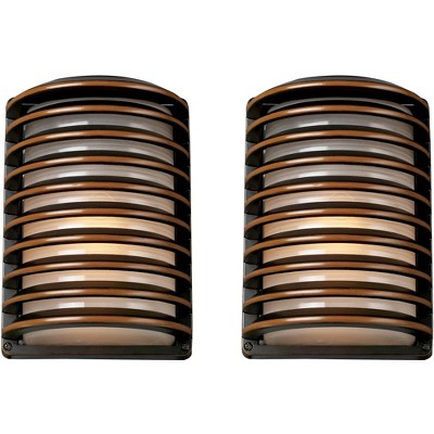 Stiffel Industrial Modern Wall Light Sconces Set of 2 Black Warm Brass Hardwired 4 1/2" Fixture Clear Ribbed Glass Shade for Bedroom Bathroom Vanity