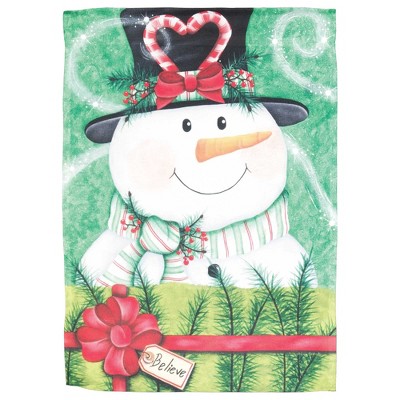 Magnolia Garden Believe Snowman Present 13 x 18 Inch Polyester Garden Flag