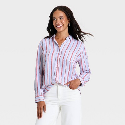 Women's Long Sleeve Linen Collared Button-Down Shirt - Universal Thread™