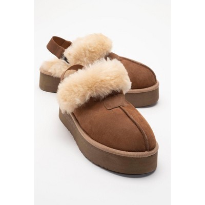 Olessa - Cognac Genuine Leather Fur-Lined Slipper (Women) | Forever & Always Shoes