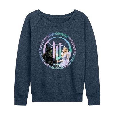 Women's - Wicked - Elphaba And Glinda Logo Lightweight French Terry Wide Neck Long Sleeve Graphic Shirt