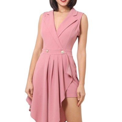 Allegra K Women's Casual Lapel Collared Two Pockets Shorts Romper Jumpsuit