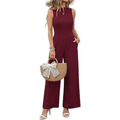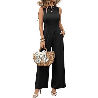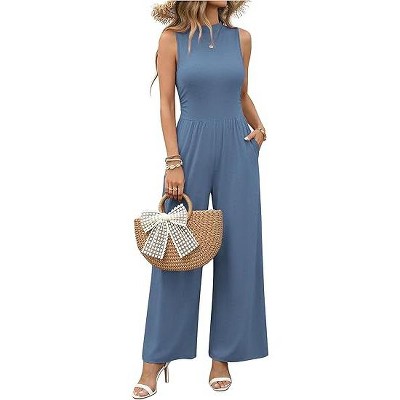 Ekouaer Summer Jumpsuits for Women Casual Mock Neck One Piece Outfits Sleeveless Formal Wide Leg Pants Romper with Pockets