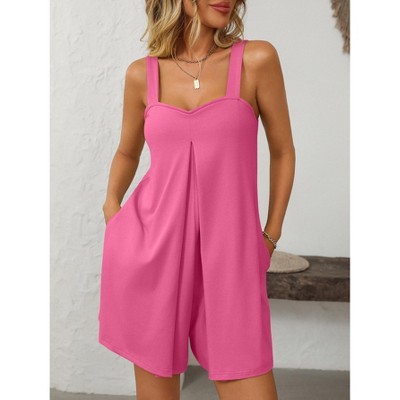 Jumpsuits for Women Square Neck Sleeveless Overalls Short Romper with Pockets Summer Trendy Outfits