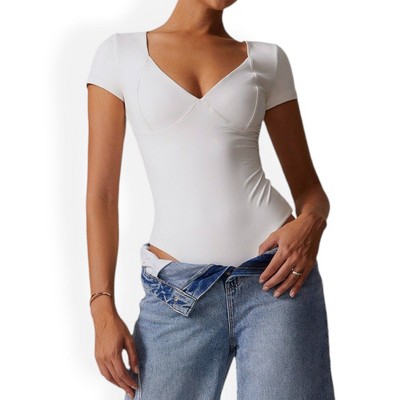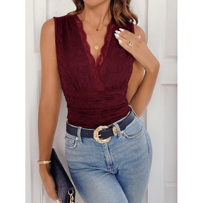 Clearlove Women's Deep V Neck Lace Bodysuit Sleeveless Tank Top Thong Body Suit One Piece Top