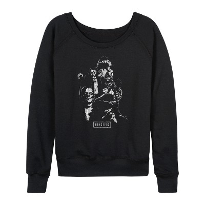 Women's - Universal - Monsters Collage Lightweight French Terry Wide Neck Long Sleeve Graphic Shirt