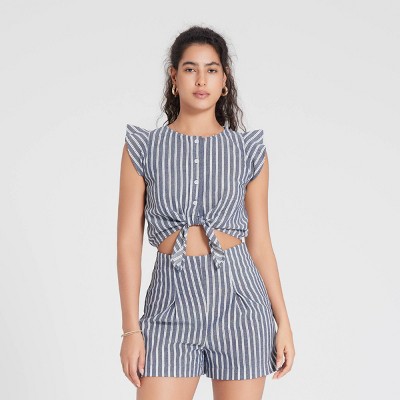 Women's Cap Sleeve Tie-Front Romper - Universal Thread™