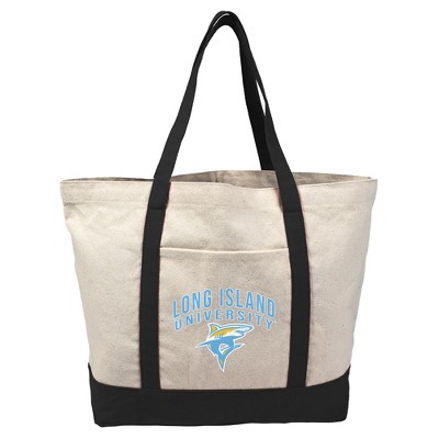 Long Island University Sharks Primary Logo Canvas Tote Bag With External Pocket, Reusable Shoulder Bag for Shopping, School, Beach, Black