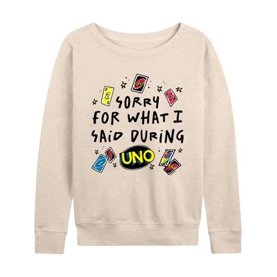 Women's - Uno - Sorry For What Said Lightweight French Terry Wide Neck Long Sleeve Graphic Shirt