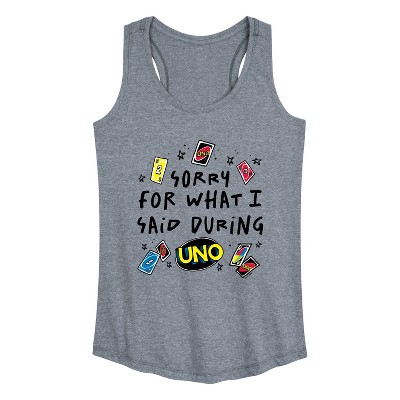 Women's - Uno - Sorry For What Said Graphic Racerback Tank