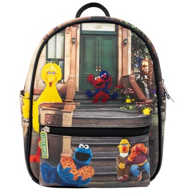 Sesame street, Cookie Monster & Elmo Mini Cosplay PU Backpack Purse, Shoulder Bag with Epoxy Filled Metal Sesame Street, 10.5 Inch, Faux Leather