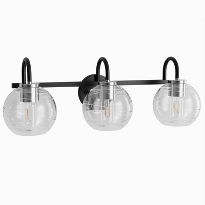 DORESshop 25 in. 3-Light Black Vanity Light with Globe Clear Glass Shades for Bathroom, Mirror, Bedroom