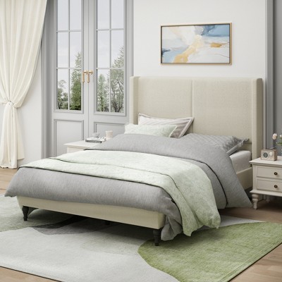 - beige upholstered bed