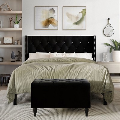 - black upholstered bed