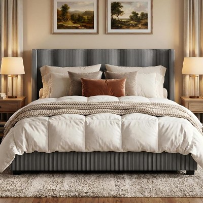 - grey upholstered bed king size