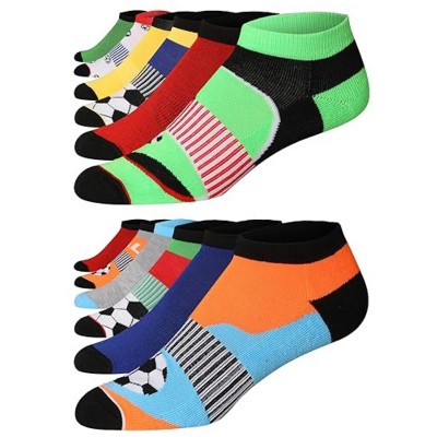 JAMES FIALLO Men's 12-Pairs Performance Vibrant Multicolor Splash with Cool Grey Highlights Low Cut Athletic Sport Socks
