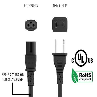 SANOXY 15ft 18 AWG 2-Slot Polarized Notebook Power Cord (IEC320 C7 to NEMA 1-15P)