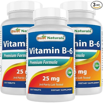 3 Pack Best Naturals Vitamin B6 25mg 120 Tablets