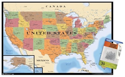 Hemispheres® Blue Ocean Series USA Laminated Wall Map, 38" x 48"
