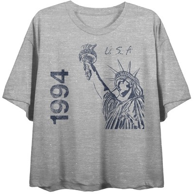 Team Gear Vintage Statue Of Liberty USA 1994 Women's Athletic Heather Crew Neck Short Sleeve Crop Top-Small