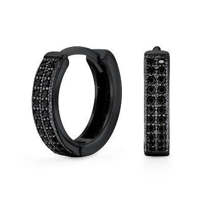 Bling Jewelry Black Pave CZ Hoop Earrings Slender Huggies Mini Hoop .925 Sterling Silver