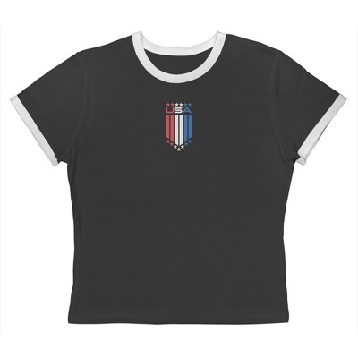 Rerun Island Women's Born In The Usa Flag Logo Black Americana 4Th Of July Short Sleeve Graphic Cotton Retro Vintage Ranger Baby Tee