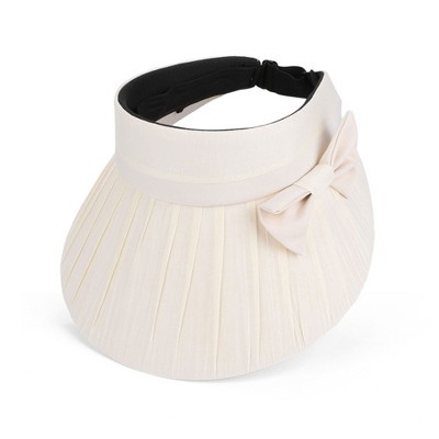 Anna-Kaci Women Wide Brim Visor Hat Pleated Design Adjustable Back Strap Sun Visor with Bow Detail
