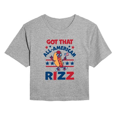 Rerun Island Women's America Retro Font Americana 4Th Of July Short Sleeve Graphic Cotton Baby Tee - Athletic Heather XL