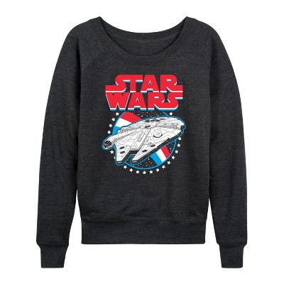 Women's - Disney - Americana Lightweight French Terry Wide Neck Long Sleeve Graphic Shirt