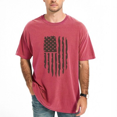 American Flag Distressed - Men's Garment Dyed Graphic T-Shirt