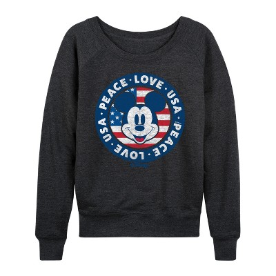 Women's - Disney - Americana Lightweight French Terry Wide Neck Long Sleeve Graphic Shirt