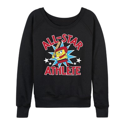 Women's - SpongeBob SquarePants - American All Star Lightweight French Terry Wide Neck Long Sleeve Graphic Shirt