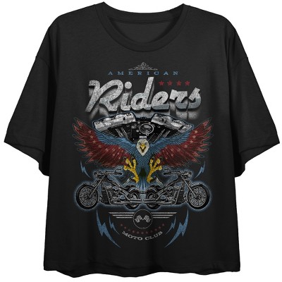 American Riders Moto Club Women's Black Graphic Crop Tee