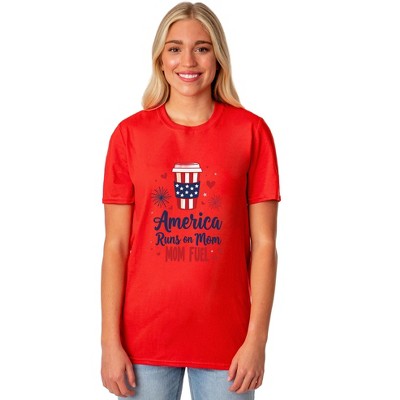 Patriotic T-Shirt Women's America Runs On Mom Fuel USA Adult Novelty Tee