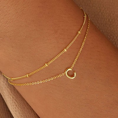Turandoss 18K Gold Initial Bracelets for Women Girls, Dainty Layered Letter Stack Charm Bracelet, Birthday Gifts, Valentine's Day Gifts for Mom Wife