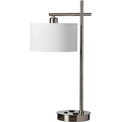 Dainolite Duggar 26 1/2" Satin Chrome USB Port and Outlet Modern Desk Lamp