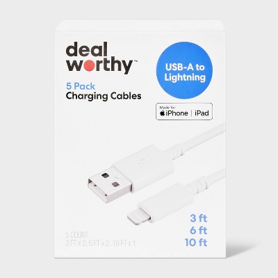 10ft USB-A to Lightning Cable - dealworthy™ White