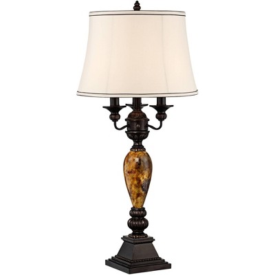 Regency Hill Auburn Rustic Farmhouse Table Lamp 25" High Bronze Hammered with Dimmable USB Workstation Base Natural Linen Empire Shade for Living Room