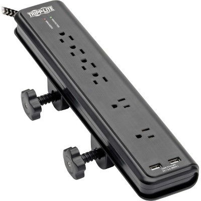 Tripp Lite 3-AC Outlet and 2-USB Port 510-Joules Protect It!® Surge Protector Power Strip with Desk Clamp, 10-Ft. Cord, TLP310USBC in Black
