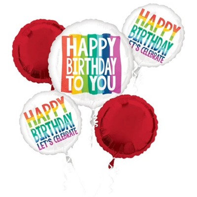 LoonBalloon 28 Inch Helium Savers Jumbo Birthday Jumbo Foil Rainbow Wishes Birthday Balloon Bouquet Kit