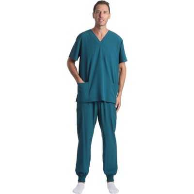 Hey Collection Mens Scrubs Set- V-Neck Scrub Top and Six Pocket Tapered Pant