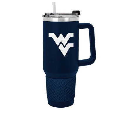 NCAA West Virginia Mountaineers Colossus Travel Mug - 40oz: Stainless Steel, Dual Lid, Silicone Grip, Includes Straw