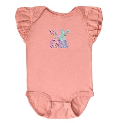 Two Bunnies Paint Print - Baby Flutter Sleeve Bodysuit