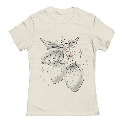 Rerun Island Women's Strawberries Gradient Outline Short Sleeve Graphic Cotton T-Shirt - Natural M