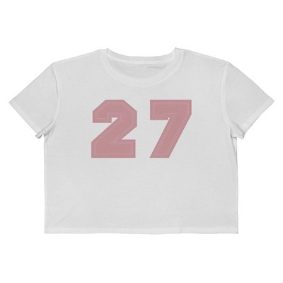 Rerun Island Women's 27 Collegiate Pink Short Sleeve Graphic Cotton Cropped Loose T-shirt - Bright White M