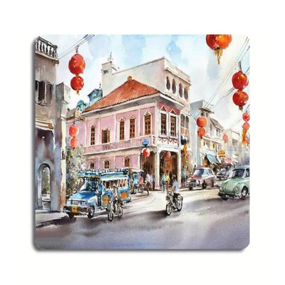 Bangkok Morning Street View Vintage Tin Sign Cute Wall Decor Retro Metal Wall Art for Home Office 8x8 Inches