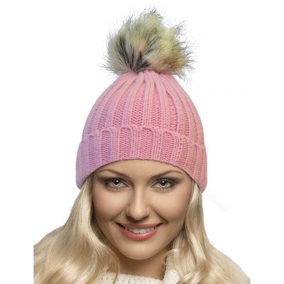 Winter Beanie Ski Warm Knitted Hat Cap With Pom Pom Faux Fur For Ladies Women - Terra