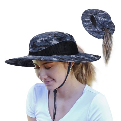 Tirrinia Women’s Wide Brim Sun Hat with Ponytail Hole, UPF 50+ Boonie Cap for Fishing Safari Hiking, Lightweight Breathable Adjustable Hats